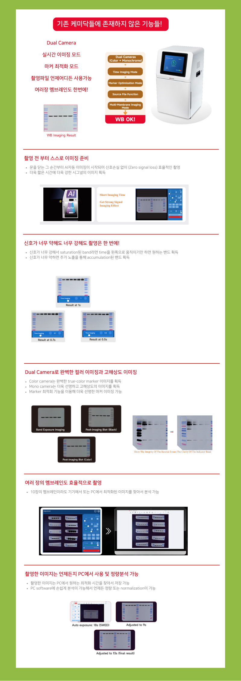 여러 번 촬영할 필요 없이, 단 한번의 촬영으로 약한 신호부터 강한 신호까지 모두 관찰이 가능한 real-time / time-lapse Chemi. Imaging System