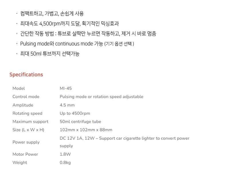 이보다 작고 귀여울 수는 없다. 그리고 강하다! 4500rpm의 리마커블한 믹싱효과! MI-45 mini vortex