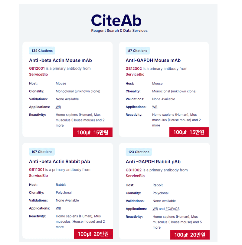 beta-actin/GAPDH MONOCLONAL antibody가 95,000원! 믿을 수 있는 citation까지!