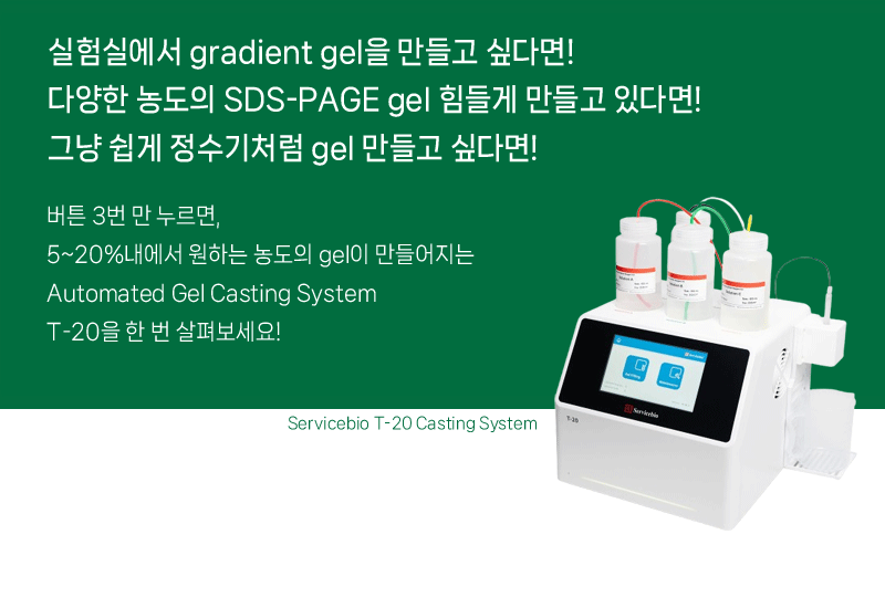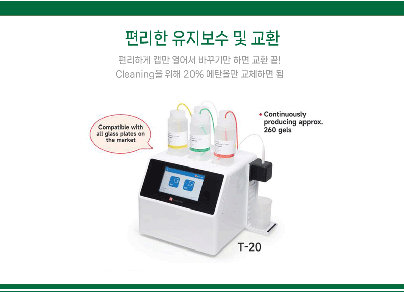 T-20 Gel Casting System은 실험실에서 만드는 단백질 gel을 매우 손쉽고 간편하게 만들 수 있는 장치입니다.