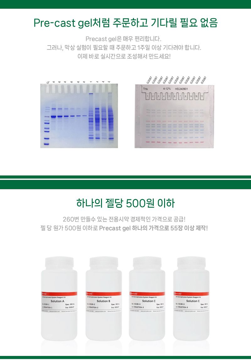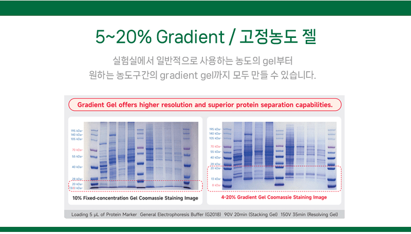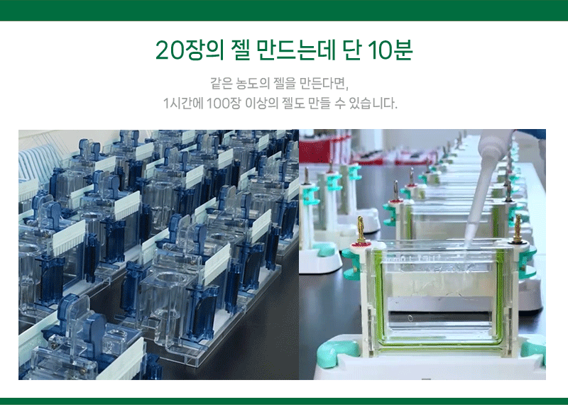 Gradient gel과 isocratic gel을 4~20%내에서 다양하게 만들 수 있으며, 매우 손쉽게 버튼 2~3번만으로 조작이 가능합니다.